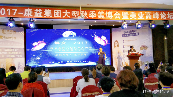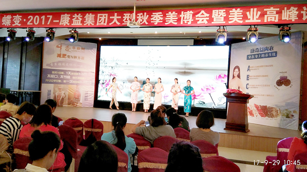 2017年9月29日,由中康聯(lián)合減肥醫(yī)學研究院為指導,中康聯(lián)合減肥醫(yī)學研究院康奇益功能性服裝研究中心主辦,香港康益集團承辦的“蝶變·2017康益集團大型秋季美博會暨美業(yè)高峰論壇”在山東煙臺隆重召開。